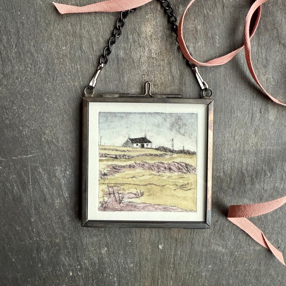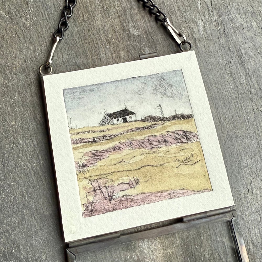 Small drypoint etching print on acid free cotton paper and tinted with watercolours.