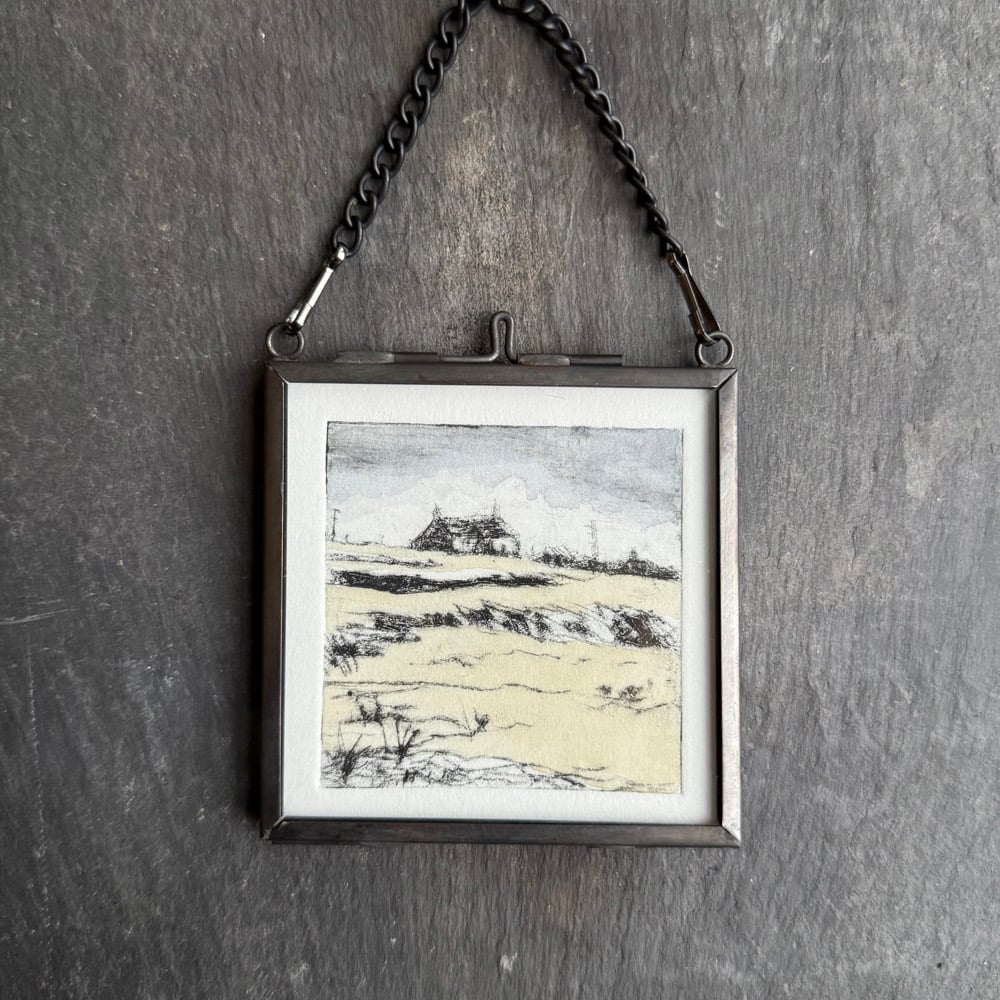 Small drypoint etching print on acid free cotton paper and tinted with watercolours.