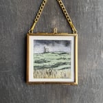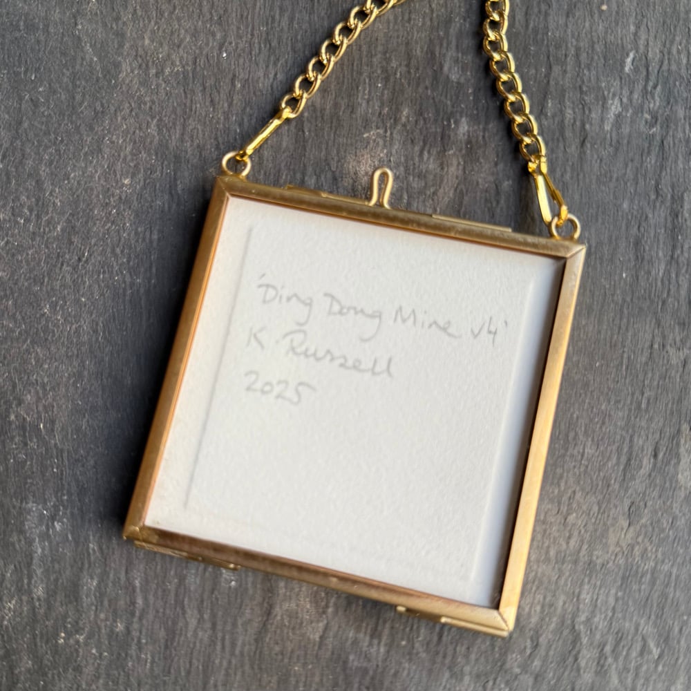 Signed on the reverse and framed in a gold brass floating glass hanging frame.