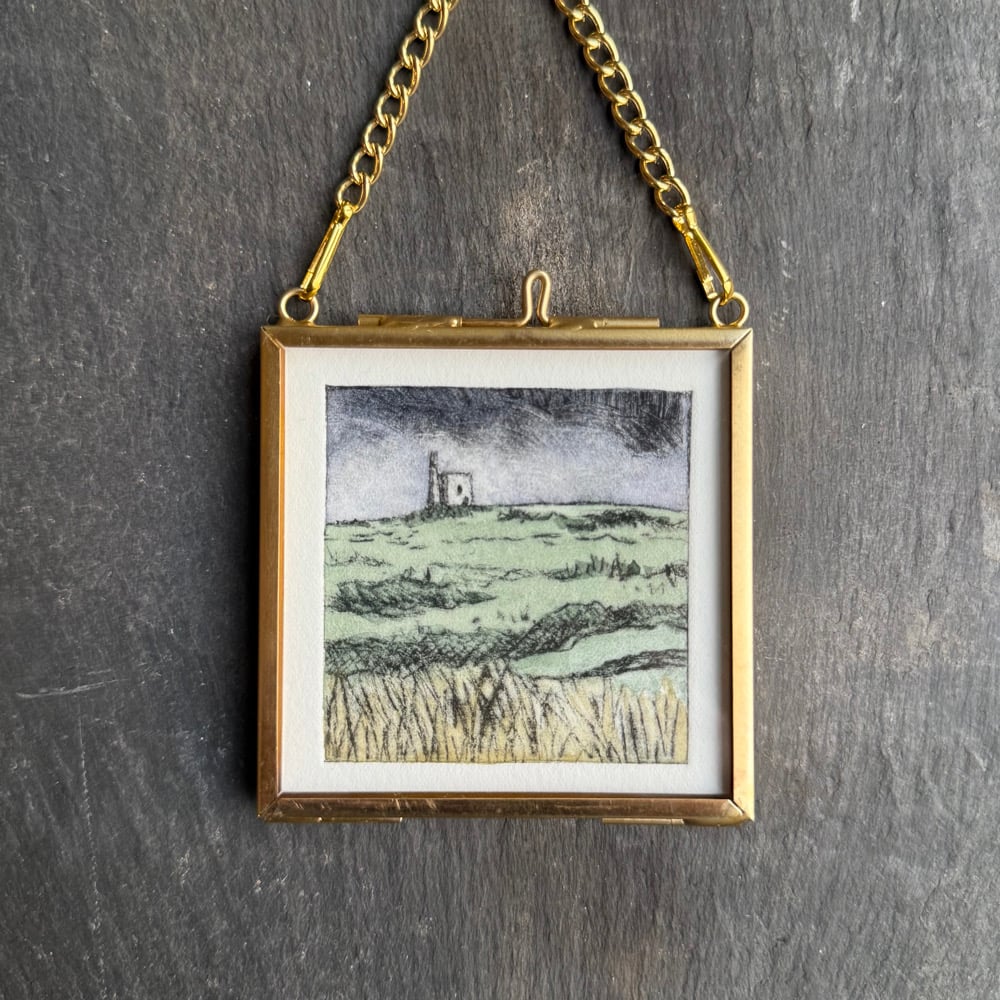 Small drypoint etching print on acid free cotton paper and tinted with watercolours.