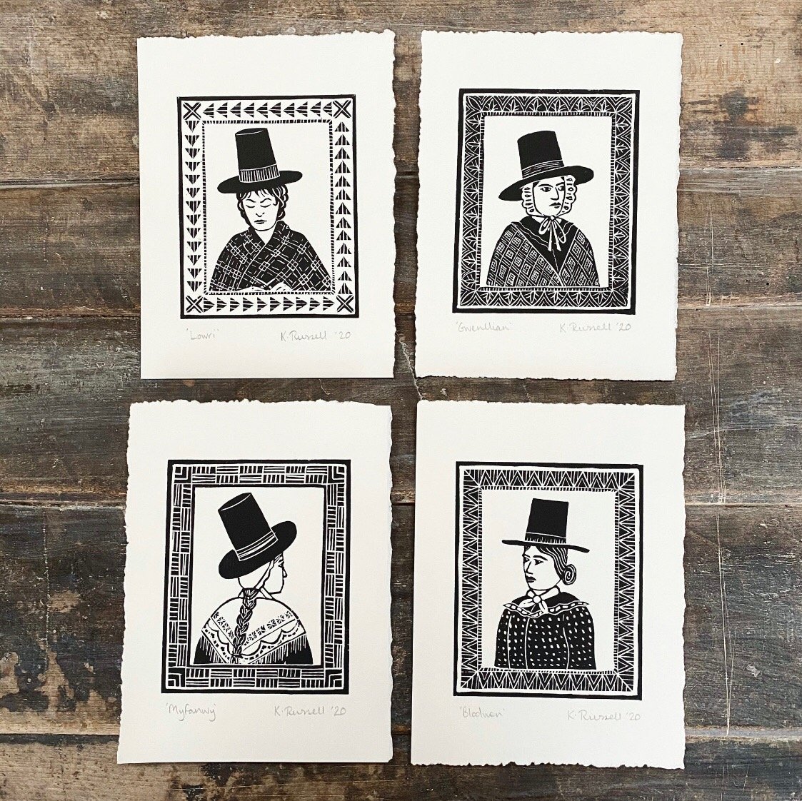 My portrait prints have been inspired by 19th Century photographs and paintings of women in traditional Welsh costume.