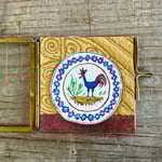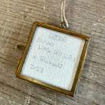 Signed on the reverse and framed in a small, brass, floating glass hanging frame.